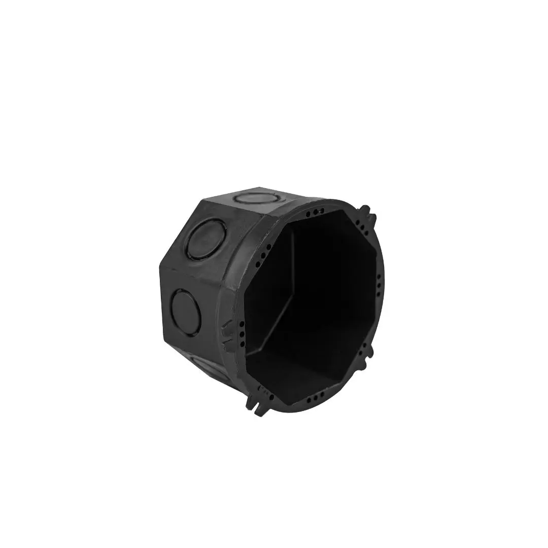 Robusto e eficiente, o Kit Caixa Octogonal Espadi possui tampa robusta que veda entrada de concreto e demais partículas. A caixa possui 8 entradas cônicas de ¾ que travam totalmente o eletroduto e proporcionam um pós concretagem perfeito. As entradas podem ser personalizadas de forma que sejam também 6 saidas de ¾ e 2 de 32mm.
